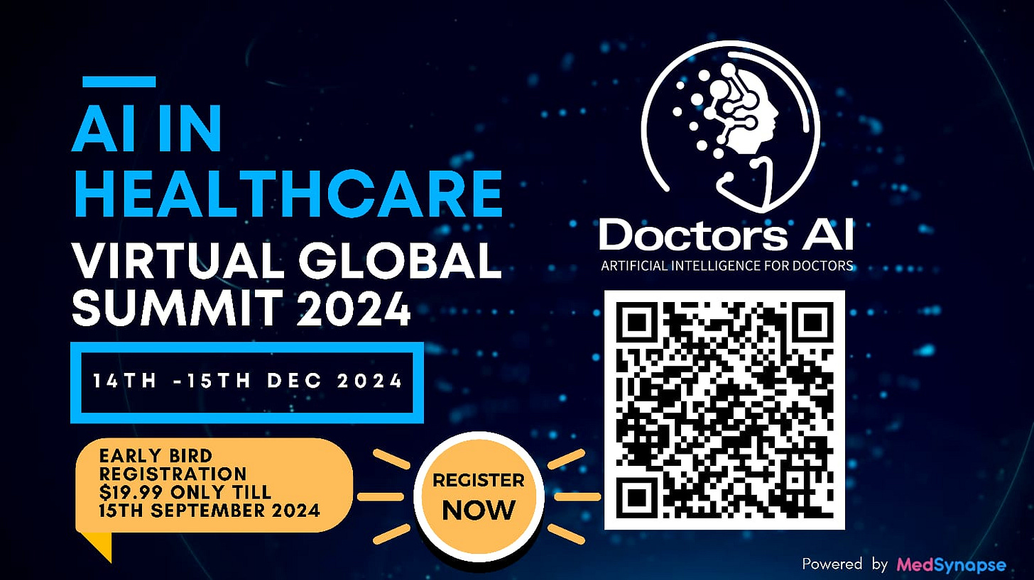 We're thrilled to announce the AI in Healthcare Virtual Global Summit 2024, organized by Doctors AI! This groundbreaking event will take place on December 14th and 15th, 2024, and will bring together leading minds in the field of AI in healthcare.