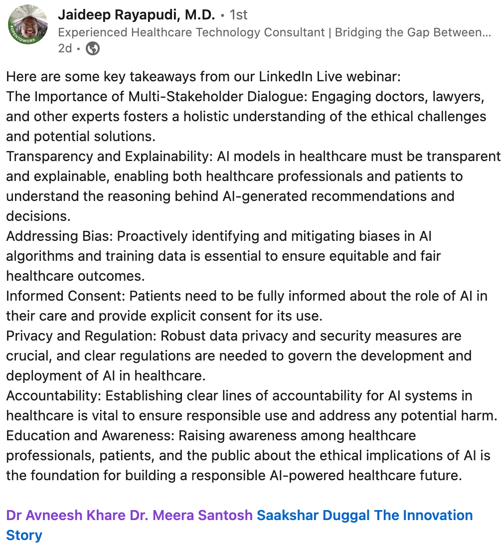If you missed out on this one, join us for the next AI Update Hour on 19th September 2024, from 9 PM to 10 PM IST, to stay at the forefront of AI integration in healthcare.